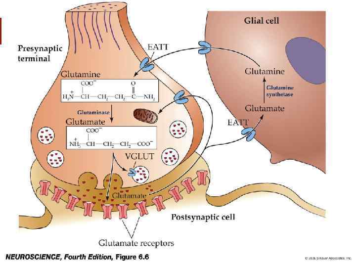 Транспортёры глутамата v Идентифицированы 4 типа транспортёров возбуждающих аминокислот (EAAT) – EAAT 1 -4, EAAT 1, EAAT 2, EAAT 3. EAAT 1 и 2 представлены в основном в глие, EAAT 3 – в нейронах. v Существуют блокаторы захвата глутамата (дигидрокаинат и др. ).
