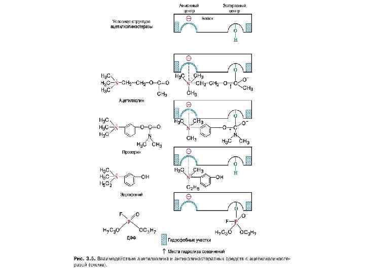 ПРИНЦИП ДЕЙСТВИЯ АНТИХОЛИНЭСТЕРАЗНЫХ СРЕДСТВ Исходное состояние После введения антихолинэстеразного средства - антихолинэстеразное средство - ацетилхолин; - метаболиты ацетилхолина