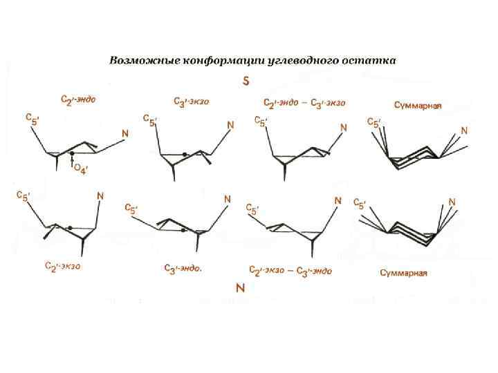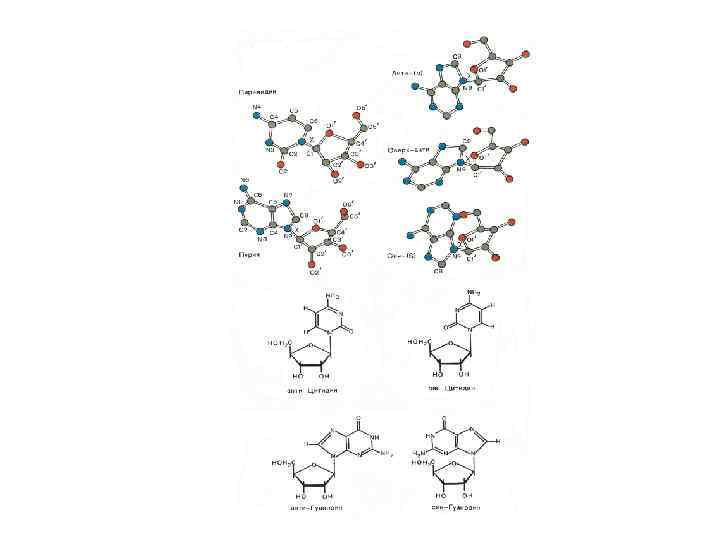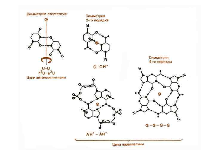 Канонические структуры ДНК (А- и В- формы) m двойные спирали m с антипараллельной ориентацией цепей m правозакрученные m стабилизированы Уотсон-Криковскими парами оснований (A-T, G-C) m плектонимичные дуплексы (для разделения цепей необходимо раскрутить двойную спираль) m вторичная структура всей молекулы может быть выведена из конформации отдельной нуклеотидной пары m линейные (неразветвленные) спирали