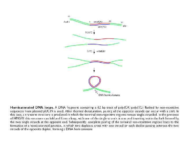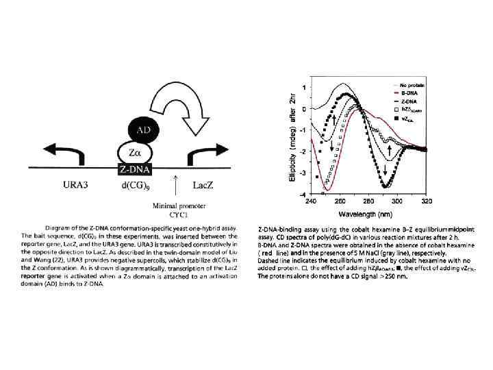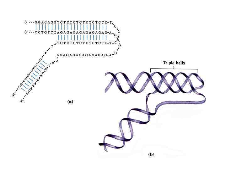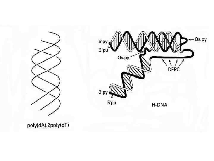 Repetitive sequence d(AG)n forms 5 different conformations Two-hairpin tetraplex with G-tetrads Hairpin (antiparallel duplex) Their occurrence depends on particular condition of p. H ionic strength length of repeat Nucleic acid α-helix DNA concentration type of cations temperature Acid-dependent parallel duplex with A+·A+ and G·G base pairs Acid-independent parallel duplex with A·A and G·G base pairs