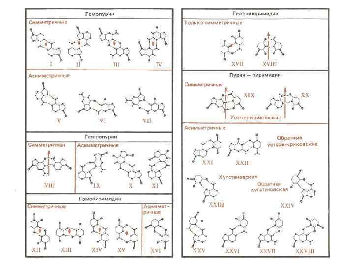 Последовательности ДНК, склонные к образованию неканонических форм m повторяющиеся моно-, ди- и тринуклеотидные последовательности, включая пурин-пиримидиновые и пурин-пуриновые повторы m гомопуриновые–гомопиримидиновые цепи m палиндромные последовательности m зеркально-симметричные последовательности m двойные спирали, содержащие только А-Т пары m oligo. A-тракты, oligo. G-тракты, oligo. C-тракты m более сложные типы внутренней симметрии
