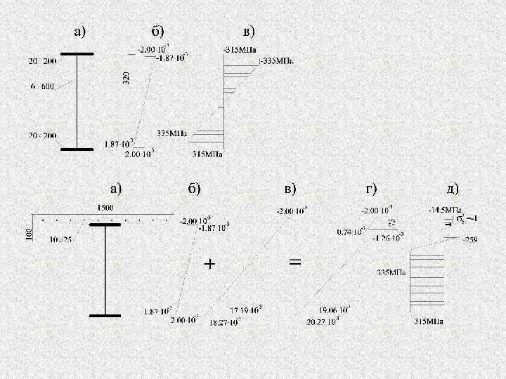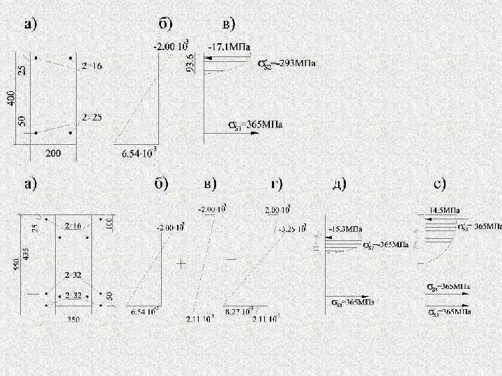 При расчете нормальных сечений по прочности в общем случае используют: • уравнения равновесия внешних сил и внутренних усилий в нормальном сечении элемента: