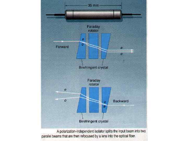 Принципиальная схема ВКР-усилителя с использованием накачки на нескольких длинах волн с различной поляризацией. Изоляторы Фарадея
