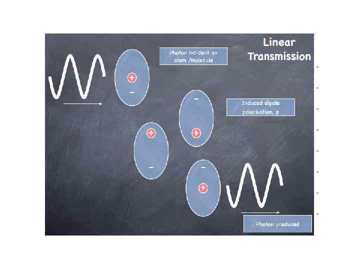 • Первый вопрос, мы должны спросить - каким образом свет проходит через среду? Чтобы ответить на этот вопрос, мы должны думать о взаимодействие света с атомами и молекулами. Как вы хорошо осведомлены, свет является электромагнитыми колебаниями. Что происходит, когда эта волна попадает на атом или молекулу? Один вариант заключается в том, что Фотон может быть поглощен. Возбужденный атом затем релаксирует через фононных процессов на основе в этом случае объект нагревается. Другой вариант в том, что Фотон поглощается, а затем излучение проходит в другой длина волны флуоресценции. Чаще всего, входящие волна индуцирует колеблющегося диполя электронов молекулы, в результате происходит повторная эмиссия на той же длине волны.