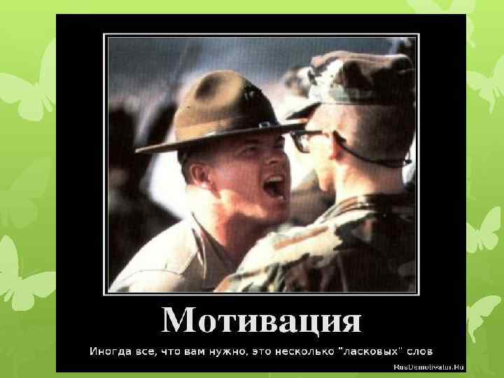 Мифы, мешающие правильно использовать мотивацию Миф № 1 «Мотивировать – значит манипулировать» Миф № 2 «Мотивировать – значит вынуждать» Реальность Одно из очень распространенных заблуждений – считать, что единственный эффективный способ мотивации – манипулятивный. Манипуляция –это игра в одни ворота, не учитывает интересы второй стороны. Реальность В определенных корпоративных культурах такая ситуация – это правда жизни, и часто то, что называют «мотивацией» , есть не более чем принуждение к труду