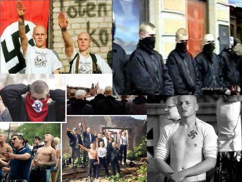 Скинхеды Субкультура Скинхеды – это одно из самых молодых направлений. Свое название они получили благодаря своему внешнему виду – лысой голове (бритой). Первыми последователями стали рабочие из низшего класса населения. Именно с Англии с 1960 года, Скинхеды стали активно распространяться по всей территории земного шара, к 2000 -му году, полностью захватив весь мир. Из музыки, предпочтение отдается предпочтение хардкору, позже к нему прирос националистический оттенок, что породило новое движение хардкор групп. В целом субкультура скинхедов направлена на сохранение нации, а современный политический строй пытается смешать все народы и нации. Это является основной причиной, почему скинхеды так упорно борются за чистоту крови своего народа. Глупо называть расистом того человека, который ставит интересы своей нации превыше другой. Немецкие скинхеды сначала сильно подражали своим английским товарищам, но уже с самого начала обозначились их характерные черты: заимствование нацистской символики и крайне агрессивное поведение. Обычными целями их нападений становятся иностранцы: турки, африканцы, евреи, но также и панки, анархисты, гомосексуалисты. Как и в других странах, в Германии скинхеды объединяются в различного рода течения, группы и товарищества, что сильно затрудняет разграничение между скинхедами крайне правых настроений и чистыми неонацистами. Общая численность скинхедов в Германии на данный момент также неизвестна, это осложняется и неоднородным составом движения.