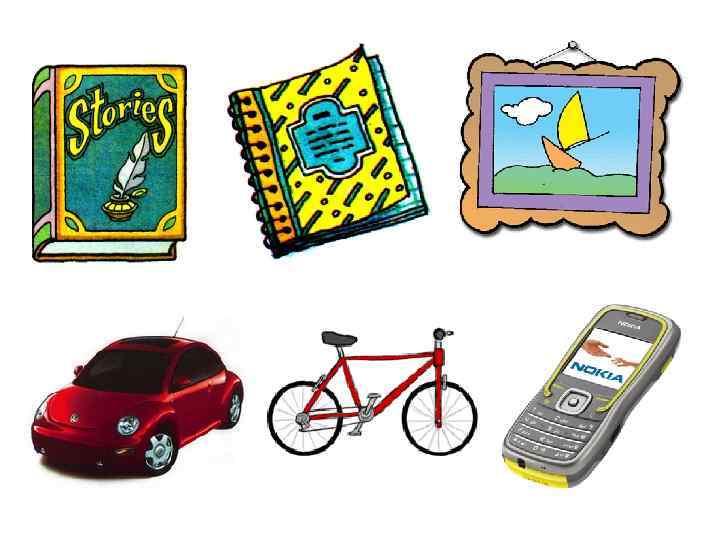 Ich habe ein Heft. Ich habe ein Fahrrad. Ich habe ein Auto.