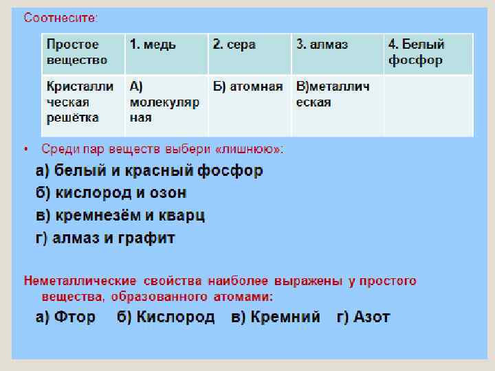 КРАСНЫЙ ФОСФОР БЕСЦВЕТНЫЙ ЖЕЛТЫЙ ФИОЛЕТОВЫЙ СЕРА ЙОД УГЛЕРОД
