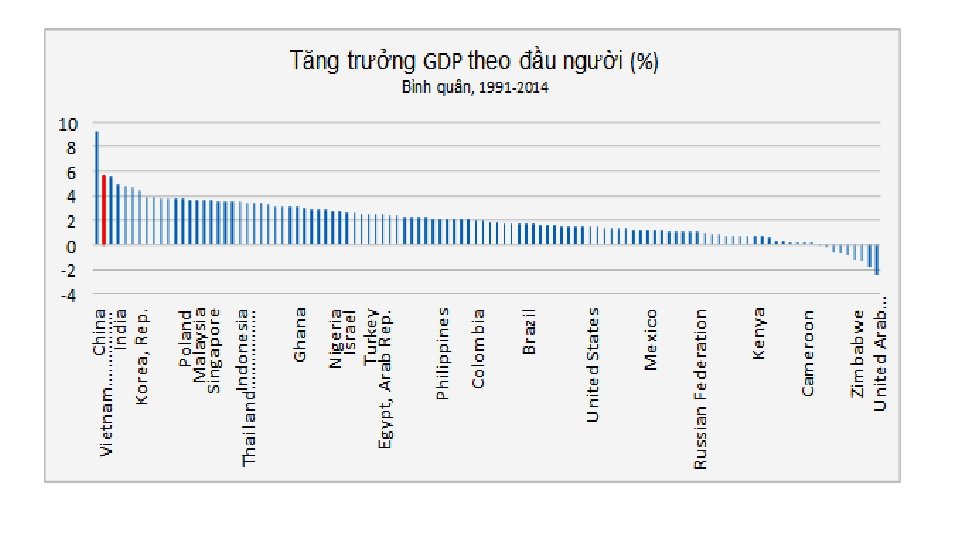Thành tựu sau 30 năm đổi mới 2. 200 2. 052 2. 000 8 7 1. 800 6 1. 600 1. 400 5 1. 200 4 1. 000 919 3 800 600 477 400 288 2 1 98 0 0 Tốc độ tăng trưởng GDP bq đầu người (%) Nguồn: Chỉ số phát triển thế giới (WDI) GDP bình quân đầu người (USD)