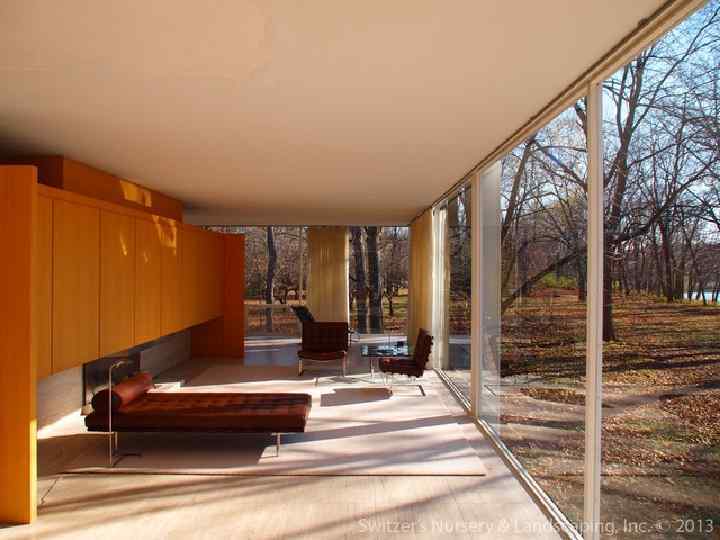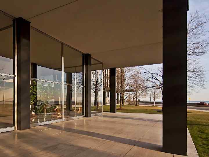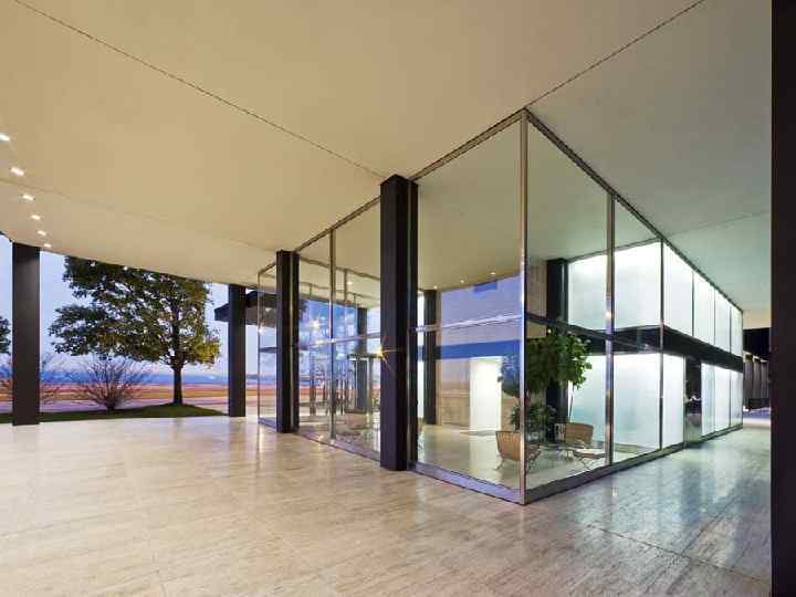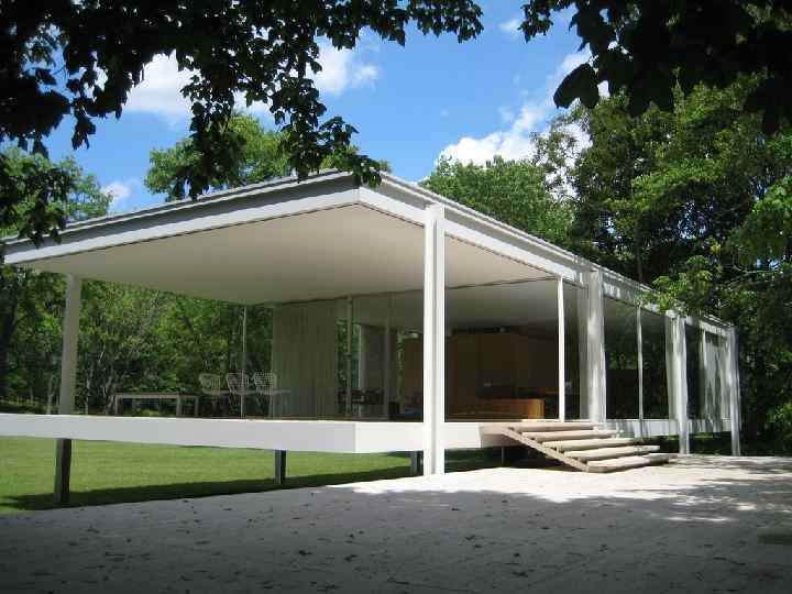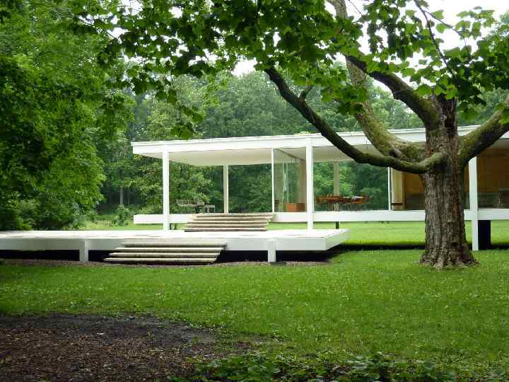 Людвиг Мис ван дер Роэ (1886 — 1969) — немецкий архитектормодернист, ведущий представитель «интернационального стиля» , один из художников, определивших облик городской архитектуры в XX веке. Руководствуясь принципом «Меньше — значит больше» (Less is more), в американский период Мис развивает концепцию «универсального» здания — предельно простого по форме стеклянного параллелепипеда, поверхность которого расчленена равномерно повторяющимися стойками. Благодаря широкому использованию стекла его дома получаются как бы пронизанными солнечным светом — в соответствии с философией неотомизма, последователем которой являлся Мис. В погоне за абсолютной абстракцией и геометризацией формы Мис начинает пренебрегать привычными бытовыми требованиями, что противоречит раннему требованию функционализма «Функция определяет форму» . Таким образом, Мис постепенно отходит от принципов, которые он сам же и разрабатывал в Германии в начале своей карьеры. В 1946— 1951 г. в местечке Плейно (Иллинойс) Мис строит «Стеклянный дом» (Фарнсуорт-Хауз) для доктора Эдит Фарнсуорт, известной в Чикаго женщины-хирурга.
