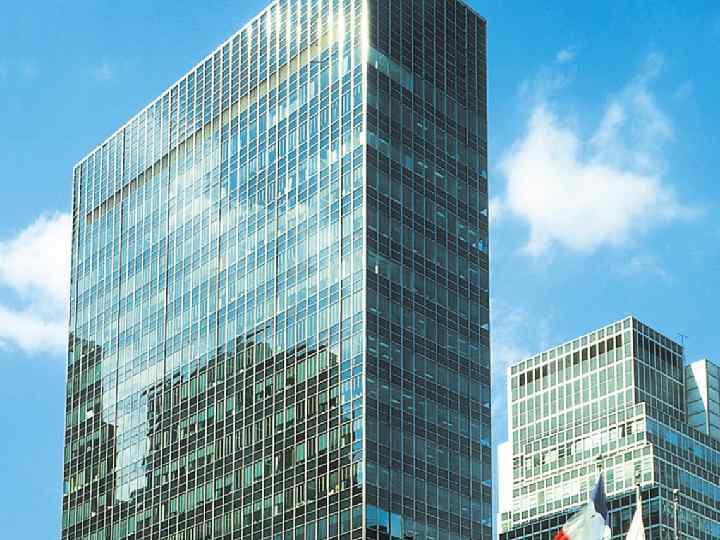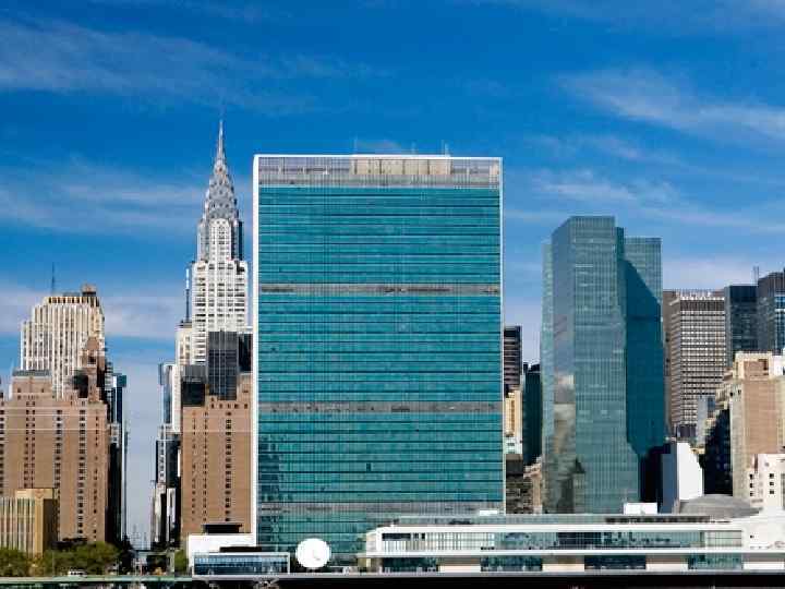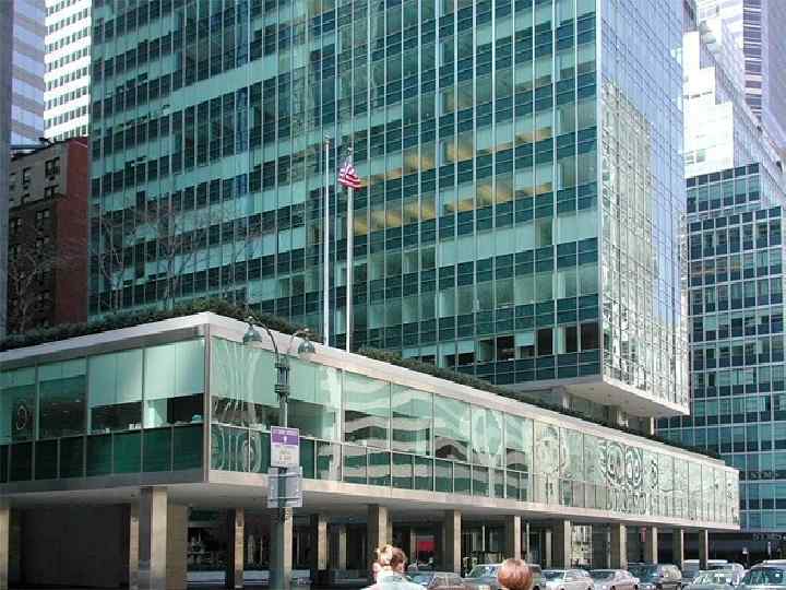 Здание ООН в Нью-Йорке, США 1947 -1952 гг. Арх. У. Гаррисон, Ле Корбюзье, О. Нимейер и др.