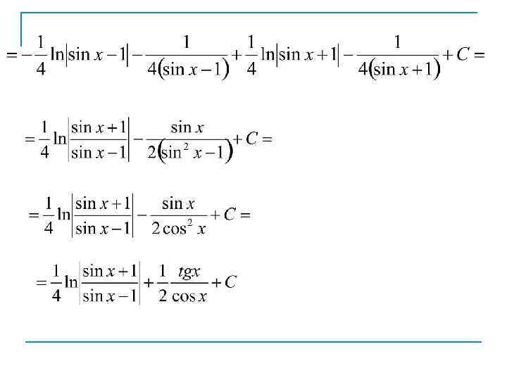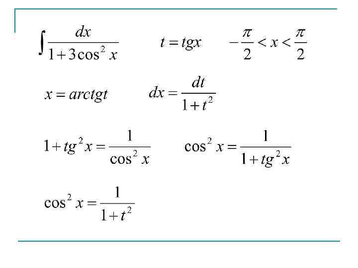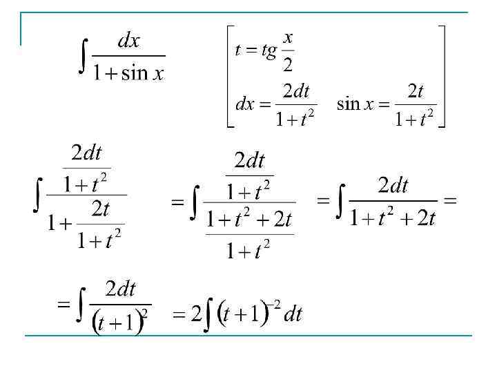 Интегрирование тригонометрических функций. Интегралы вида где R – рациональная функция, находятся с помощью универсальной подстановки при этом