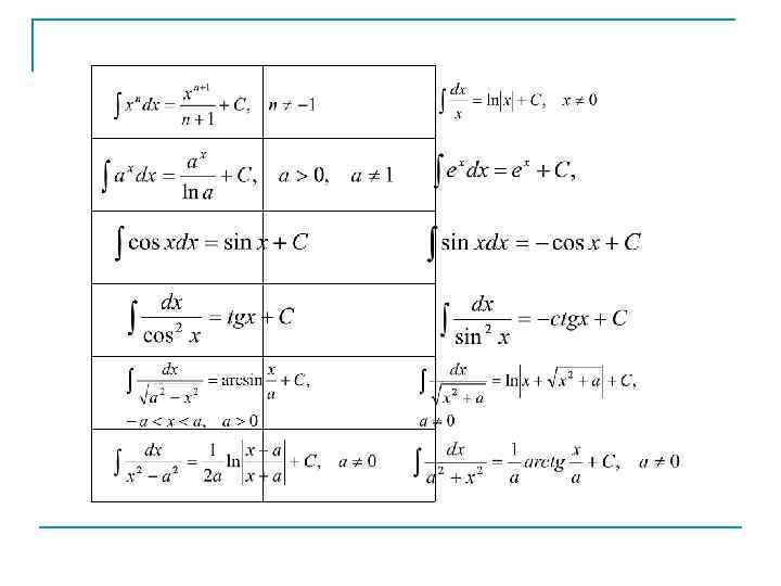 Совокупность всех первообразных для функции на некотором промежутке Х называется неопределенным интегралом от функции и обозначается где – подынтегральная функция, – подынтегральное выражение.