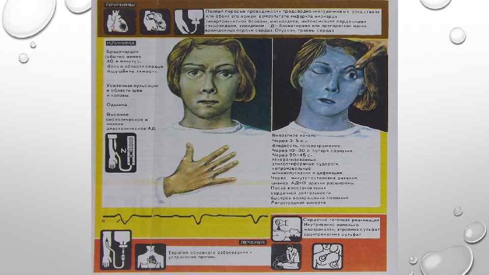 СИНДРОМ АДАМСА-СТОКСА-МОРГАНЬИ ЭТОТ СИНДРОМ ОБУСЛОВЛЕН ПРЕКРАЩЕНИЕМ ИЛИ РЕЗКИМ УРЕЖЕНИЕМ ЭФФЕКТИВНОЙ СОКРАТИТЕЛЬНОЙ ДЕЯТЕЛЬНОСТИ СЕРДЦА. ОН ПРОЯВЛЯЕТСЯ ПРИСТУПАМИ ПОТЕРИ СОЗНАНИЯ, СОПРОВОЖДАЮЩИМИСЯ РЕЗКОЙ БЛЕДНОСТЬЮ, ИНОГДА ОСТАНОВКОЙ ДЫХАНИЯ, СУДОРОГАМИ. ПРИСТУПЫ ДЛЯТСЯ ОТ НЕСКОЛЬКИХ СЕКУНД ДО НЕСКОЛЬКИХ МИНУТ И ПРОХОДЯТ САМОСТОЯТЕЛЬНО ЛИБО ПОСЛЕ СООТВЕТСТВУЮЩИХ ЛЕЧЕБНЫХ МЕРОПРИЯТИЙ, НО ИНОГДА ЗАКАНЧИВАЮТСЯ ЛЕТАЛЬНО.