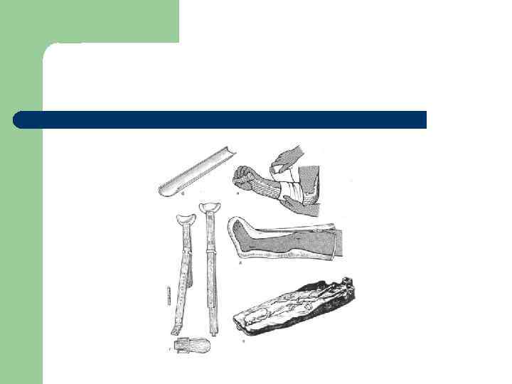 Правила иммобилизации l l l шины должны обеспечить иммобилизацию как минимум двух смежных суставов. Три сустава при повреждении бедра (тазобедренный, коленный и голеностопный суставы) и плеча (плечевой, локтевой и лучезапястный суставы). Транспортные шины накладываются поверх одежды или обуви. Шина должна быть отмоделирована до наложения. Моделировать шины на больном недопустимо. При открытых переломах шина накладывается после наложения асептической повязки. С целью профилактики пролежней шина, перед наложением должна быть обмотана мягким материалом. В зимнее время иммобилизованную конечность необходимо дополнительно утеплить.