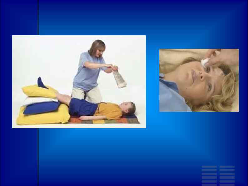 Первая помощь при обмороке. 1) Положите пострадавшего на спину на ровную поверхность. 2) Приподнимите ноги пострадавшего выше уровня сердца (примерно на 30 см от уровня земли) 3) Расстегните тесную одежду (воротник рубашки, ремень и т. д. ) 4) Обеспечьте доступ свежего прохладного воздуха. 5) Голову пострадавшего нужно повернуть на бок (это предотвратит западение языка, а при возникновении рвоты её попадание в дыхательные пути)