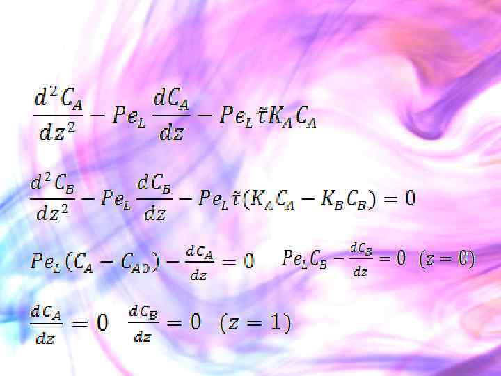 Аналитическое решение этой системы уравнений возможно только в отдельных случаях, например, для реакции первого порядка. В этом случае решение имеет вид: Полученный результат справедлив для любых значений критерия Пекле ( ).