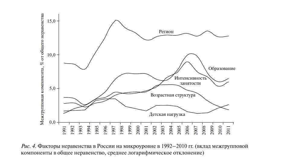 Причины неравенства в России • Различия в доходах между группами населения с разными демографическими и социальноэкономическими характеристиками. • Если существуют препятствия на пути мобильности населения, пространственное неравенство может стать источником застойного неравенства и бедности домохозяйств, проживающих в экономически неразвитых районах.
