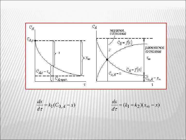В этом случае плотность глубины реакции х будет равна 2) Рассмотрим другой случай, когда СА 1, 0=СА 2, 0 – эквивалентные концентрации исходных веществ.