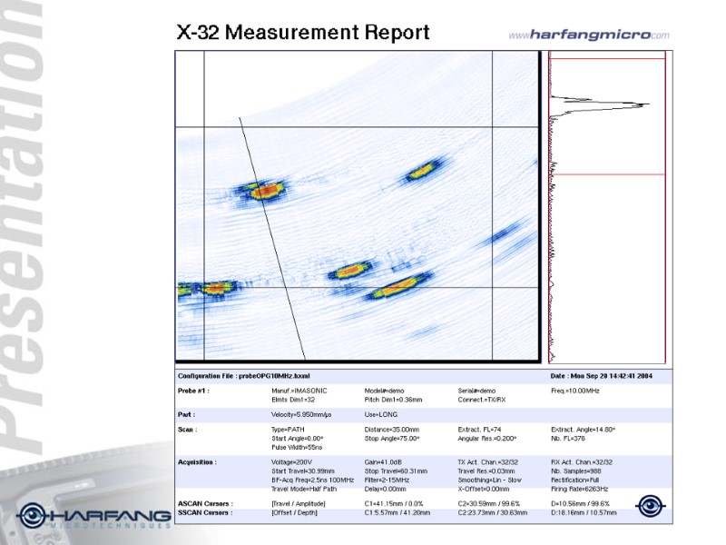 UTStudio Преимущества Интуитивно понятный и удобный интерфейс Быстрый анализ данный и определение размеров дефектов Широкий выбор измерительных инструментов Поддержка протокола передачи данных FTP с X-32 Сканы A/B/D/S/L Построение видов объектов контроля (Сверху/сбоку/ с торца) Кумулятивные виды Функция Zoom и программное увеличение усиления сигнала Системы координат: Декартовая / Полярная До 10 курсоров на вид (скан) Возможность удаленного управления X-32 Поддержка управления модулями MP-1/2 и автоматизированными сканерами Максимальная скорость записи данных 4.2 Мб в секунду Разработана под Windows XP и выше