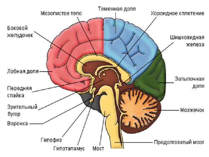 Центральная Периферическая Головной мозг Нервные узлы Нервная система (по анатомическому Спинной мозг Нервы строению) Продолговатый мозг Мост Средний мозг Промежуточный мозг Мозжечок Большой мозг (2 полушария)
