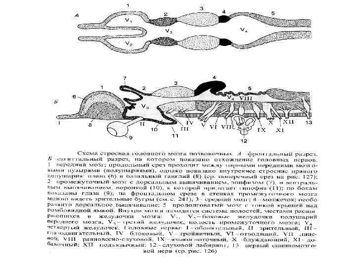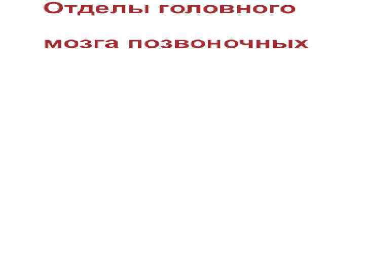 Функции головного мозга • Передний (конечный) мозг: базальные ганглии (контролируют движения и инстинктивное поведение, формируют эмоциональные реакции) и обонятельные луковицы. У пресмыкающихся появляется кора больших полушарий, которая становится высшим центром (у млекопитающих и анатомически, и функционально перекрывает и подчиняет все остальные отделы).