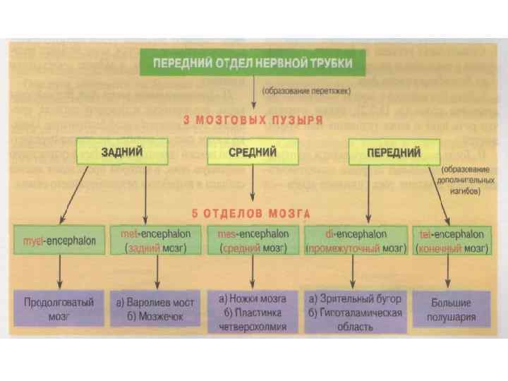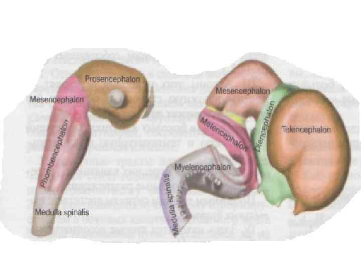 Головной мозг Развитие – передний отдел нервной трубки Составные части 1. Продолговатый мозг 2. Задний мозг (мост, мозжечок) 3. Средний мозг (ножки, четверохолмие) 4. Промежуточный мозг (таламус, эпифиз, гипоталамус, гипофиз) 5. Конечный мозг (кора, обонятельный мозг, подкорковые ядра)