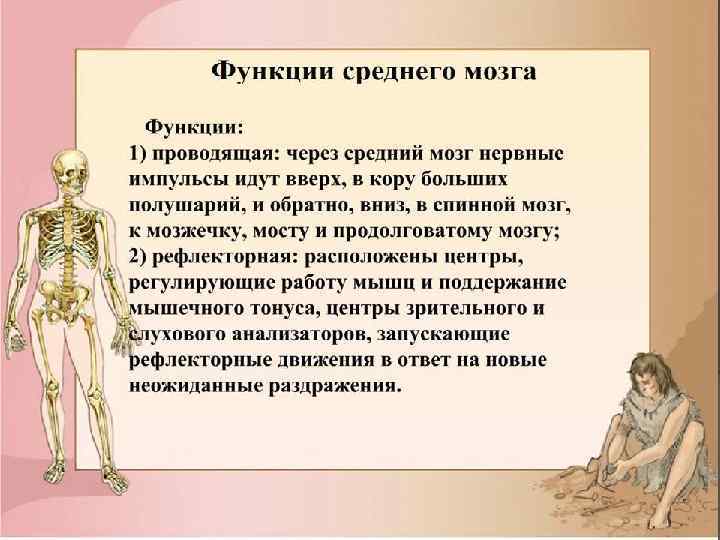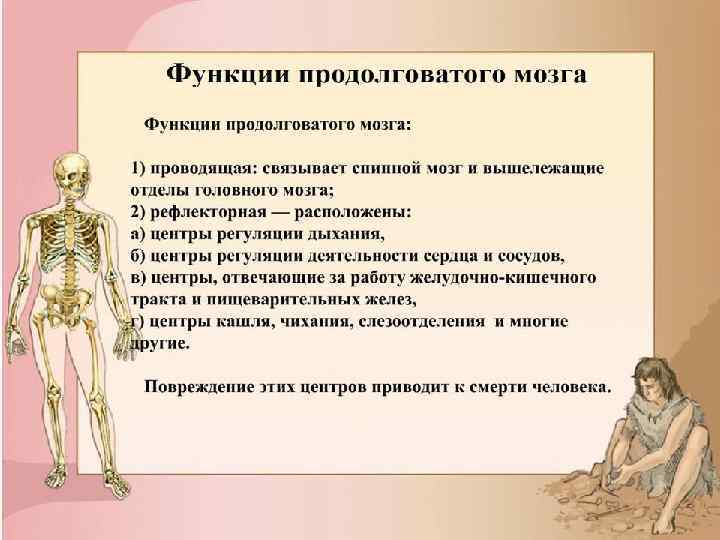 Функции спинного мозга Проводниковая Рефлекторная Примеры спинномозговых рефлексов: коленный, сгибание и разгибание конечностей, одергивание руки от горячего. При повреждении спинного мозга может развиться паралич.