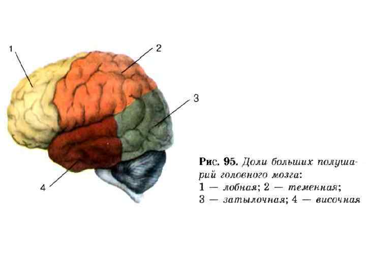 Доля коры Функции Лобная Мышление, интеллект, речь, движение, внимание Височная Слух, обоняние, вкус Теменная Общая чувствительность (температурная, болевая и осязательная), кожно-мышечная чувствительность, движение. Затылочная Зрение