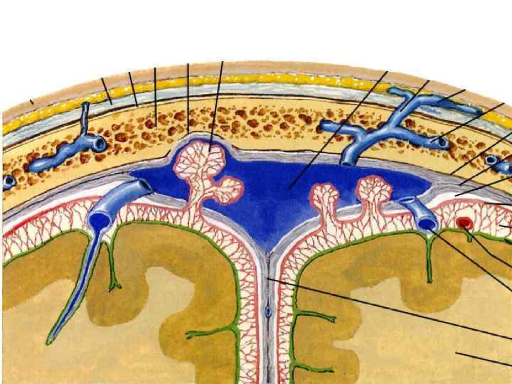 Отток ликвора • Из субарахноидального пространства ликвор поступает в венозные синусы твердой мозговой оболочки с помощью пахионовых грануляций (выростов паутинной оболочки)