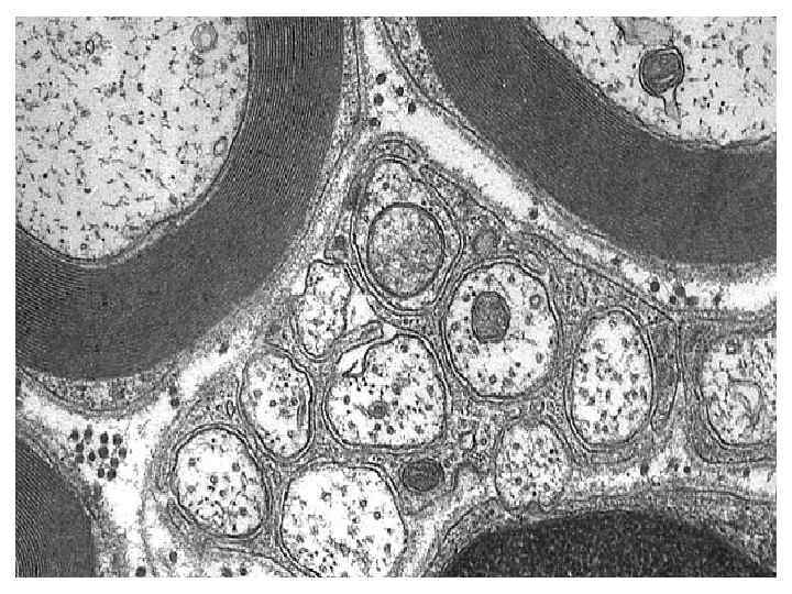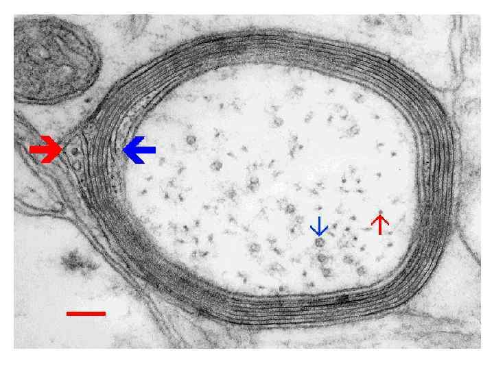 Нервное волокно - это отросток нейрона (аксон или дендрит), окруженный глиальной оболочкой. • Отросток нейрона в составе нервного волокна называется осевой цилиндр. • Глиальная оболочка образована леммоцитами (тип глии – олиго дендроглия) • Типы нервных волокон: 1. Миелиновые 2. Безмиелиновые