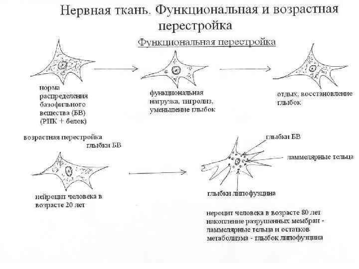 План лекции: 1. 2. 3. 4. 5. 6. 7. Структура и функции нервной ткани. Эмбриогенез. Строение нейрона. Типы нейроглии. Нервные волокна Нервные окончания Функциональная и возрастная перестройка нервной ткани