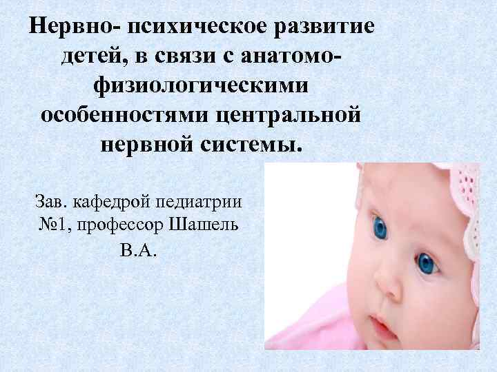 Нервно- психическое развитие детей, в связи с анатомо- физиологическими особенностями центральной нервной системы. Зав. кафедрой педиатрии № 1, профессор Шашель В. А.