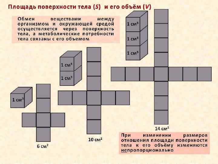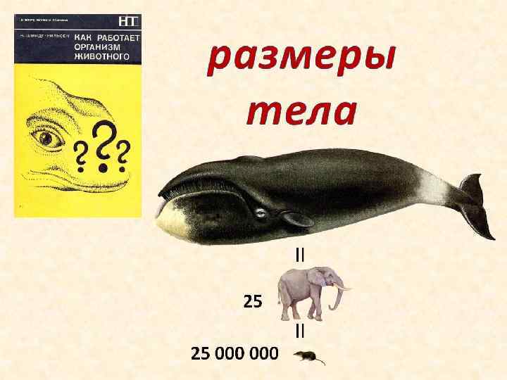 Размеры и метаболизм Соотношение уровня активности метаболических процессов (потребления энергии) и веса (массы) тела oa е. M метаболизма, Вт интенсивность z eta ны ов р ок л еп Т oa taz e M ые н дн о ол Х Pr o z to ов кр о oa масса тела, кг С увеличением размера тела потребление энергии также растет, но с меньшей скоростью: на каждую дополнительную единицу веса затрачивается не единица энергии, как можно было бы ожидать, а заметно меньше.