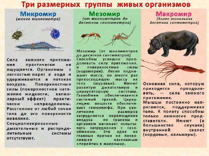 Почему не все живые организмы превратились в гигантов ? Мелкие животные перестают быть «привлекательной» добычей для крупных хищников. Способность использовать крохотные резервы пищи. мелкие укрытия и Находят такие микроклиматические условия, которые недоступны для более крупных существ, обитающих в той же местности. Большая относительная поверхность мелких организмов приводит к высокой степени торможения воздухом при падении. Например, насекомые, упавшие с высоты, как правило, не разбиваются. Мелкие животные легко подхватываются токами воздуха и разносятся на большие расстояния.