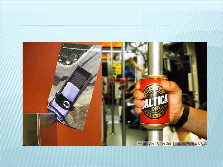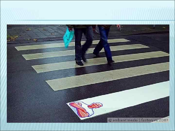«СТАНДАРТНЫМ» ХОДОМ В ЭТОМ ИЗНАЧАЛЬНО НЕСТАНДАРТНОМ ВИДЕ РЕКЛАМЫ МОЖНО НАЗВАТЬ «ВПИСЫВАНИЕ» ИЗОБРАЖЕНИЯ ЧЕЛОВЕКА ИЛИ ЧАСТЕЙ ТЕЛА В НОСИТЕЛЬ РЕКЛАМЫ. ОБРАЩАЕТ НА СЕБЯ ВНИМАНИЕ И ВСЕГДА СМОТРИТСЯ ЭФФЕКТНО! КАК, НАПРИМЕР, ТАКАЯ РЕКЛАМА ЖЕВАТЕЛЬНОЙ РЕЗИНКИ НА ДНЕ ОДНОРАЗОВОГО СТАКАНЧИКА: