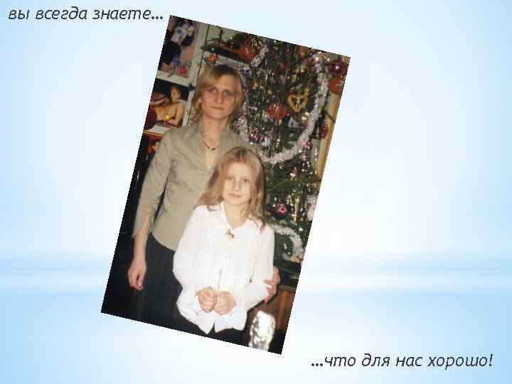 вы всегда знаете… …что для нас хорошо!