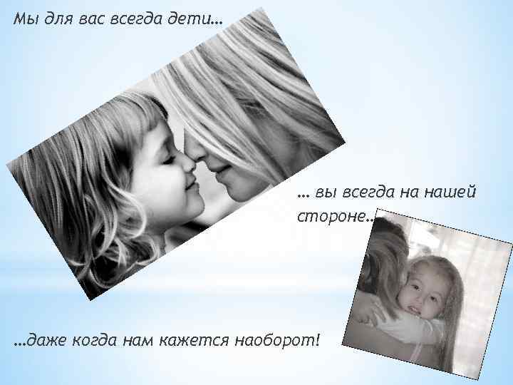 Мы для вас всегда дети… … вы всегда на нашей стороне… …даже когда нам кажется наоборот!
