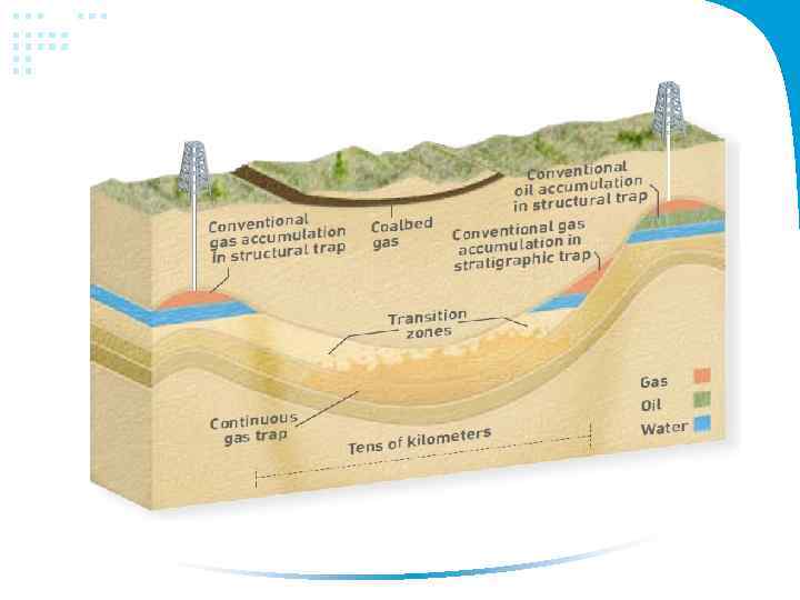 1. Природный газ низкопроницаемых плотных пород • • Нетрадиционные источники природного газа: – МЭА: сланцевый газ, газ угольных пластов, газ низкопроницаемых пластов; – Другие: природный газ, добываемый из залежей глубиной более 15000 футов, газ в зонах аномально высокого пластового давления в отложениях, Арктические и подводные газогидраты. Газ низкопроницаемых плотных пород : Нетрадиционные источники газа, находятся в плотных коллекторах хард-рок, в илах с низкой пористостью, или в песках, которые создаёт благоприятные условия для образования газа. • Характеристика порода коллекторов природного газа низкопроницаемых плотных пород : – Степень пористости порода: ≤ 10%; – Степень проницаемости: ≤ 0, 1 мкм 2; – Природный газ низкопроницаемых пластов называют сланцевый газ, когда он находится в сланцевых пород.