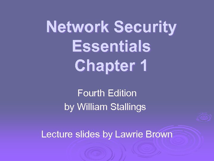 Network Security Essentials Chapter 1 Fourth Edition by William Stallings Lecture slides by Lawrie Brown