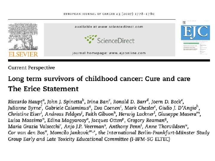Conclusions • The survivorship passport should be a standard of care in the follow-up of childhood cancer survivors • Guidelines development is an international long-term plan • The treatment summary may be long to be prepared • Linkage among several data bases in which treatment information has already been collected is highly recommended • Use of common languages • … a challenging but a surely very useful enterprise!
