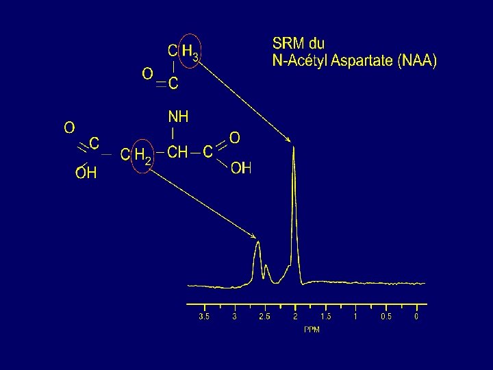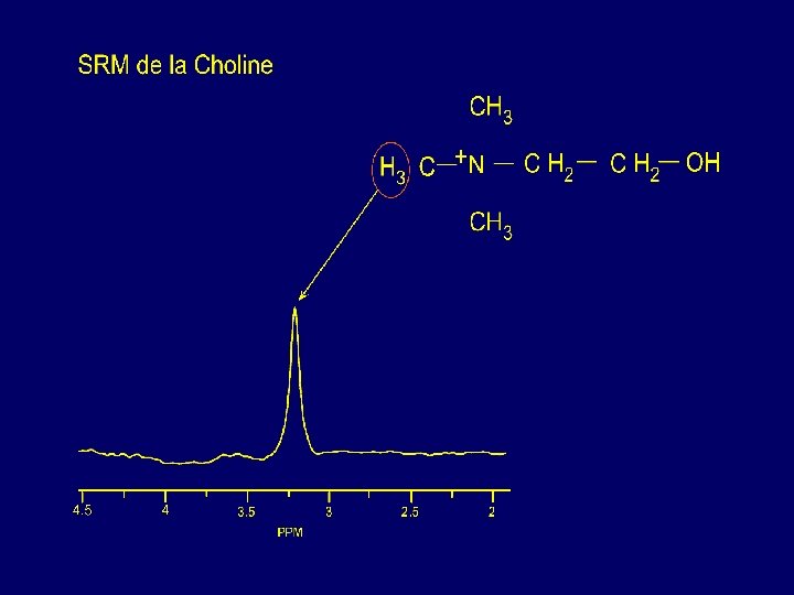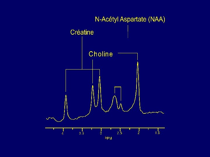 Exploration du métabolisme cérébral par SRM 1 H in vivo AA XCITATEUR E EXCITOTOXICITE CELLULARITE BIOENERGÉTIQUE MARQUEUR GLIAL glutamate (neurones) glutamine glie ( ) METABOLISME MEMBRANAIRE MYELINISATION / DEMYELINISATION créatine phosphocréatine INFLAMMATION PROCESSUS TUMORAL METABOLISME NH 3 CYCLE LUTAMINE-GLUTAMATE G N-acétyl aspartate MARQUEUR NEURONAL choline et dérivés OSMOLYTES OSMOLYTE MARQUEUR GLIAL taurine scyllo - inositol MALADIES METABOLIQUES -protéines -acides aminés -lipides mobiles -si acide lactique myo - Inositol glycine METABOLISME MEMBRANAIRE MYELINISATION/ DEMYELINISATION INFLAMMATION AA EXCITATEUR ANOXIE 4. 00 3. 50 3. 00 2. 50 2. 00 1. 50 ppm 1. 00 0. 50 0. 00