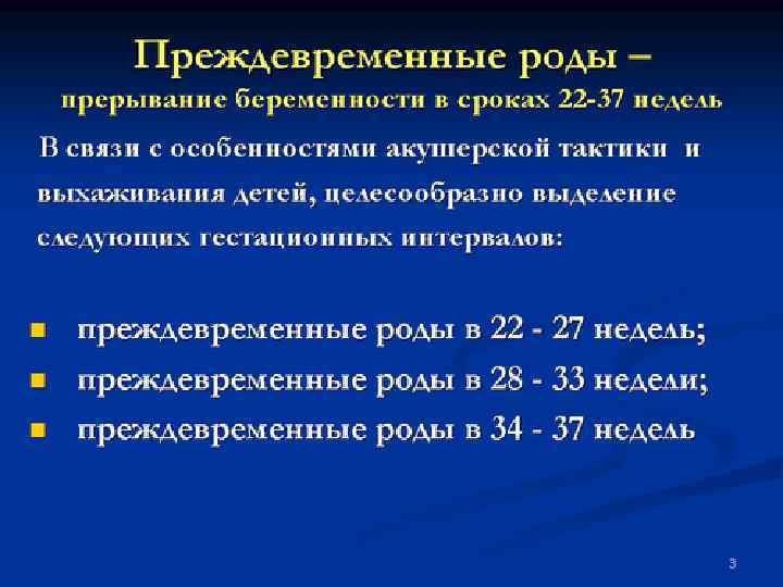 Невынашивание самопроизвольное прерывание беременности в различные сроки беременности до 37 недель Привычное невынашивание - прерывание беременности два и более раза Недонашивание -прерывание беременности в сроки от 22 до 37 недель -