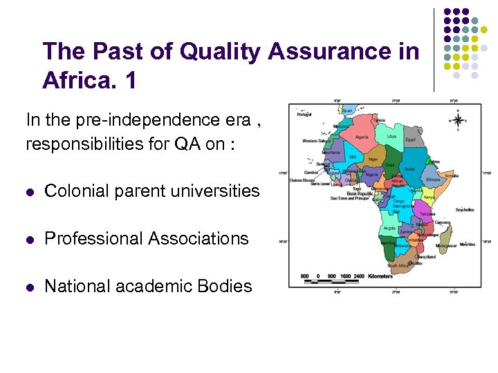 The Past of Quality Assurance in Africa. 1 In the pre-independence era , responsibilities for QA on : l Colonial parent universities l Professional Associations l National academic Bodies