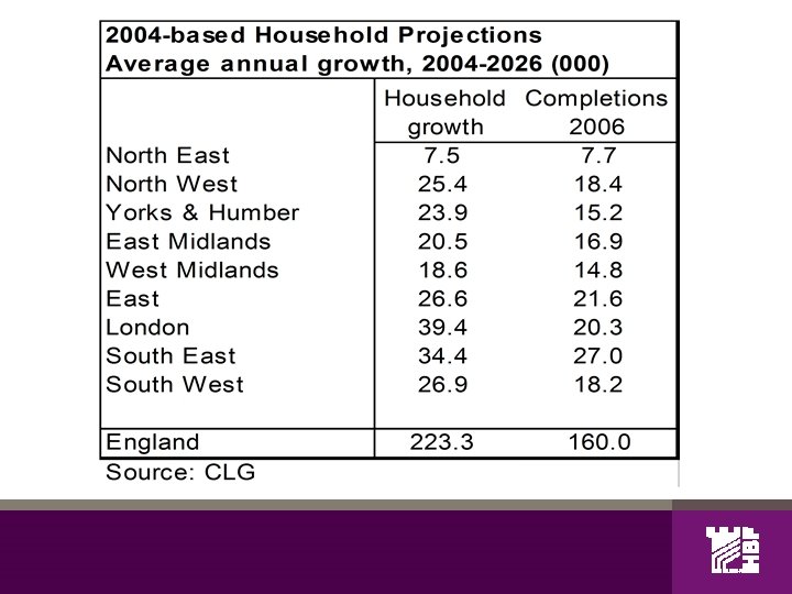 Rapid household growth Household projections England: 2004 -based: 223, 000 pa (2004 -26) 2003 -based: 209, 000 pa (2003 -26) 1996 -based: 152, 000 pa (1996 -2021) Net migration: 33% growth 2004 -26