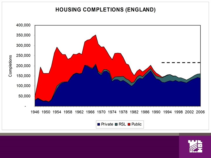 Housing supply Total housing completions (England): 1993 -2000: flat 2001: 130, 000 (historic low) 2006: 160, 000 (+23% 2001) Government target: 200, 000 pa by 2016 Household growth: 223, 000 pa