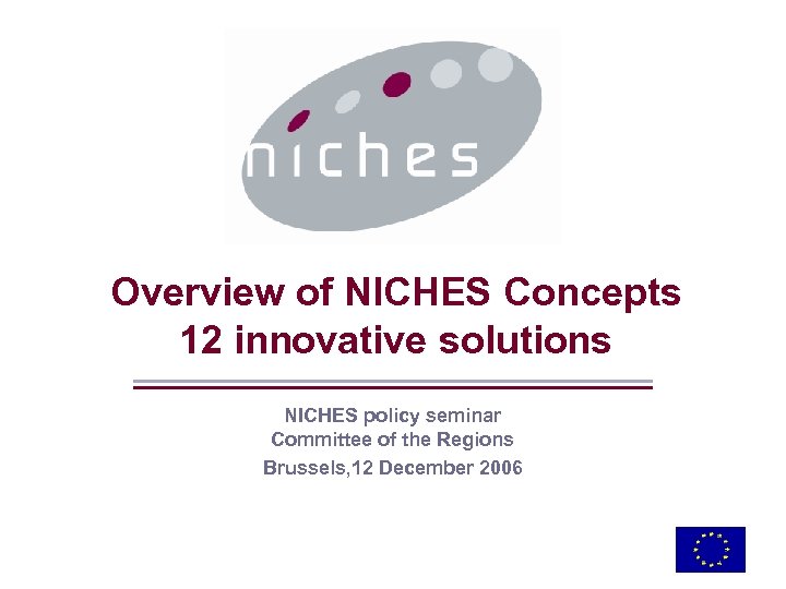 Overview of NICHES Concepts 12 innovative solutions NICHES policy seminar Committee of the Regions Brussels, 12 December 2006