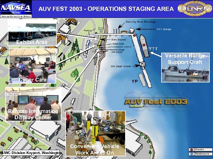AUV FEST 2003 - OPERATIONS STAGING AREA Exhibit Area Versatile Range Support Craft Cyber Cafe Remote Information Display Center NUWC Division Keyport, Washington March 2004 Convenient Vehicle Work Areas On