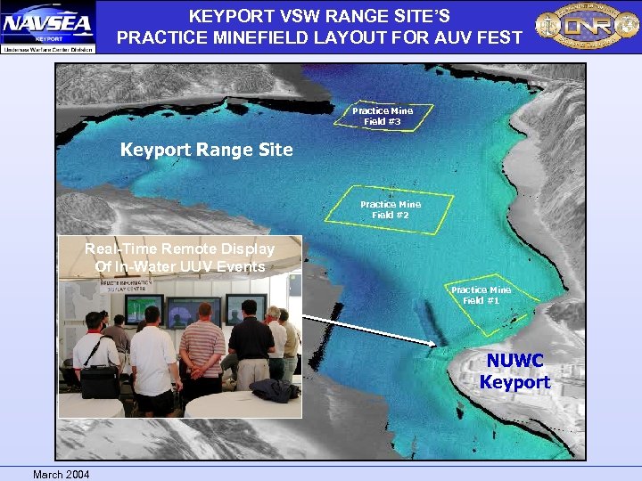 KEYPORT VSW RANGE SITE’S PRACTICE MINEFIELD LAYOUT FOR AUV FEST Practice Mine Field #3 Keyport Range Site Practice Mine Field #2 Real-Time Remote Display Of In-Water UUV Events Practice Mine Field #1 NUWC Keyport March 2004