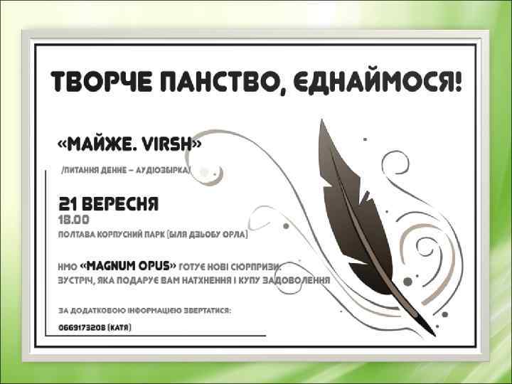 Наші контакти http: //www. youtube. com/user/Magnum Opus. Poltava http: //vk. com/club 30063267 www. poltava. pl. ua